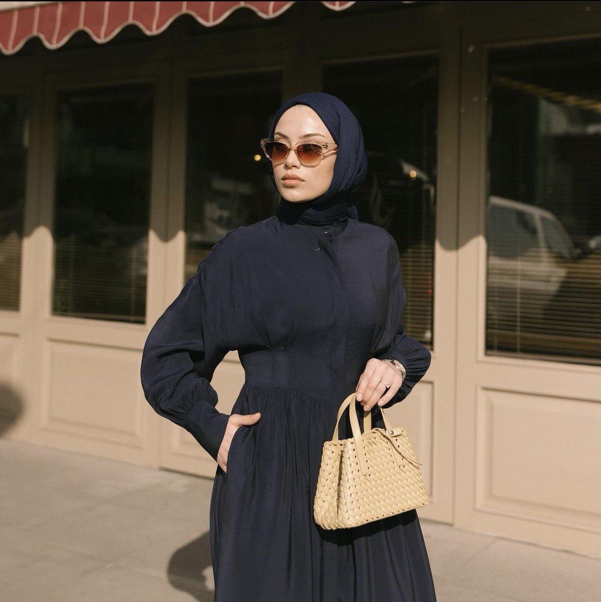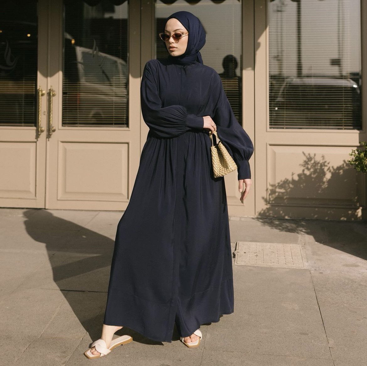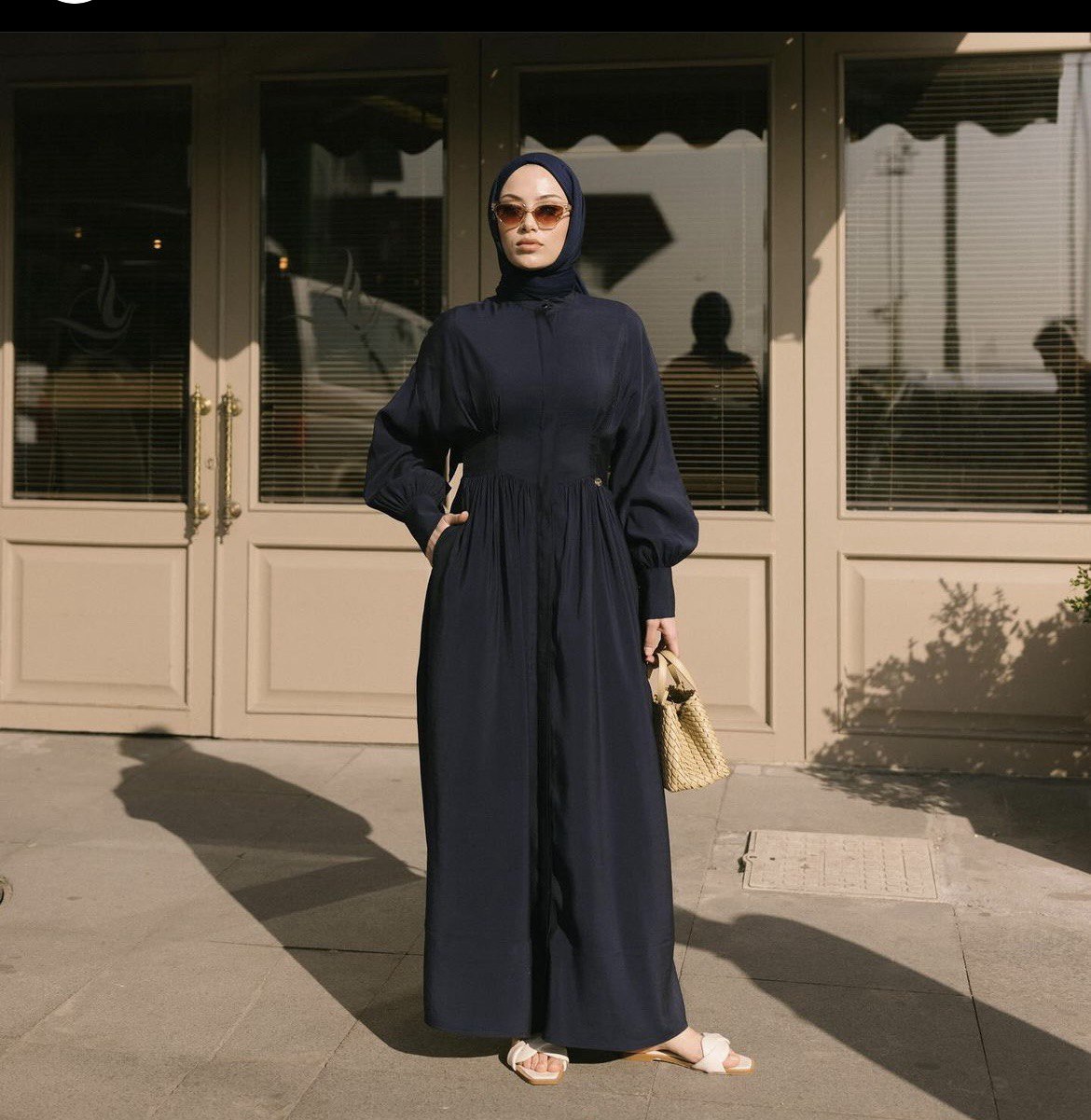 Efil efil, lacivert ve ecru elbisemiz.